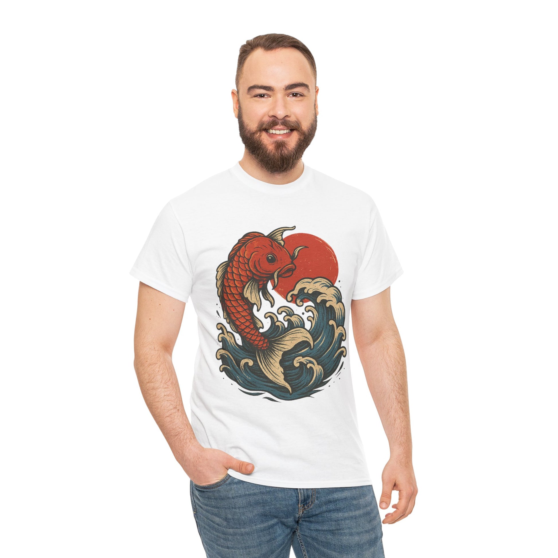 Japanese Koi Fish Heavy Cotton Tee, Casual Wear