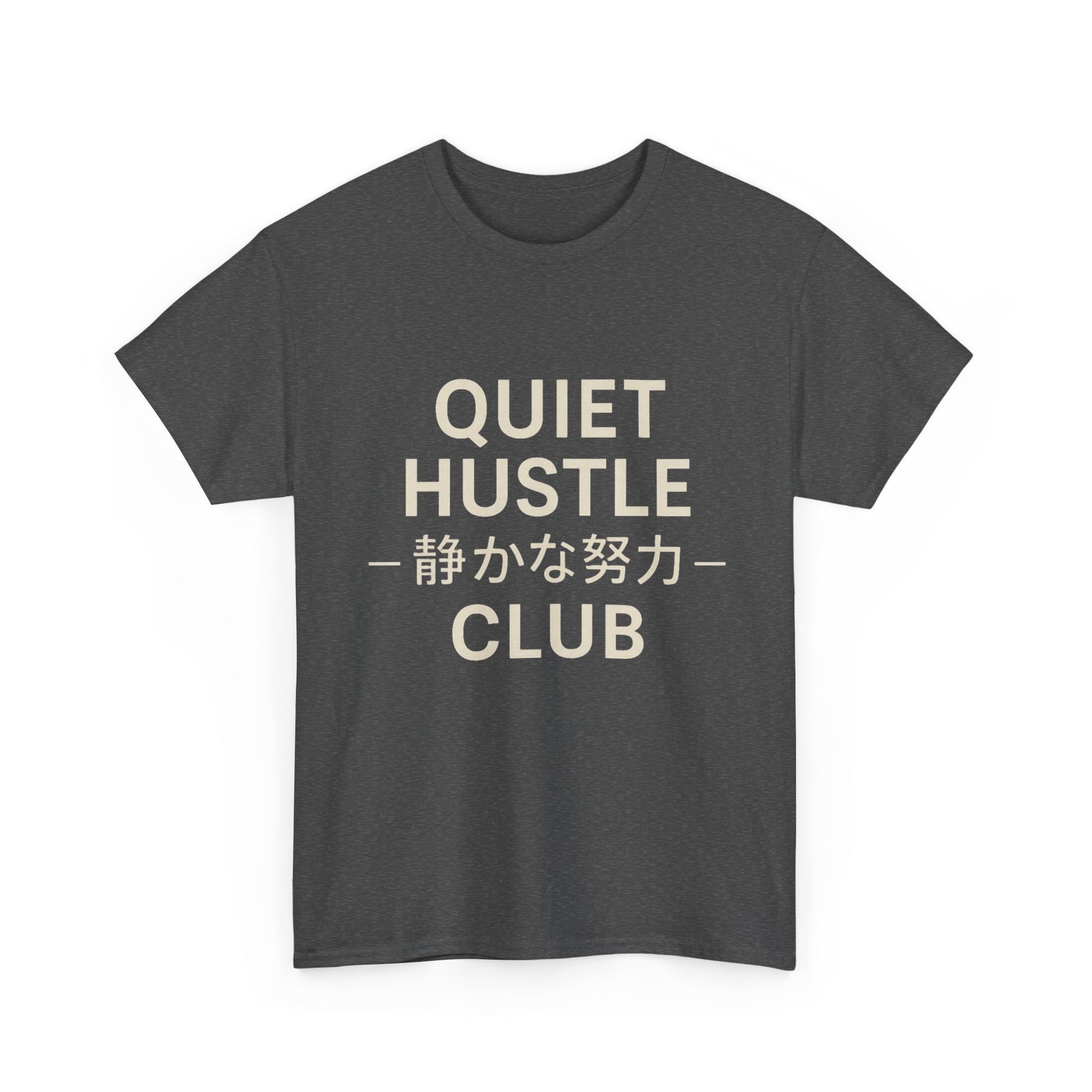 Quiet Hustle Club Tee — Minimal Motivational Shirt with Japanese Text